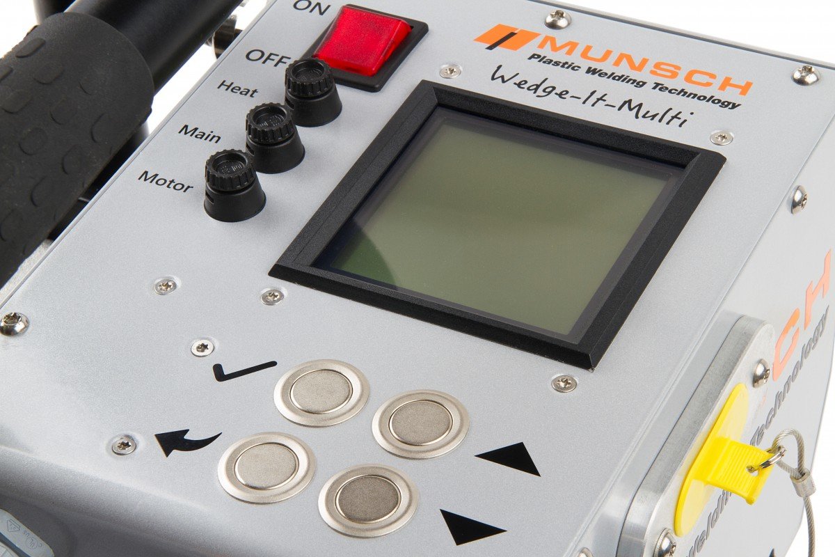 Dieser „Alleskönner“ unter den Folienautomaten kann Folien zwischen 1.0mm und 3.0mm problemlos verarbeiten. Auch T-Stöße werden ohne Schwierigkeiten verschweißt. Er arbeitet standardmäßig mit einem Kupfer-Heizkeil, kann aber auf Wunsch auf Edelstahl (für PVC-Schweißung) umgerüstet werden. Als großes Plus bringt diese Maschine eine Datenaufzeichnung mit sich.